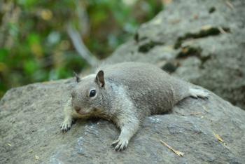 And he was right! Minutes later, we arrived at the bridge and enjoyed the view of the waterfall, taking a few obligatory “we were here” photos. We sat around under the trees by the bridge for a while to recover before setting off back. We filled up our water bottle again and started the journey back, past a squirrel that was splattered on a rock looking knackered. It looked how I felt.