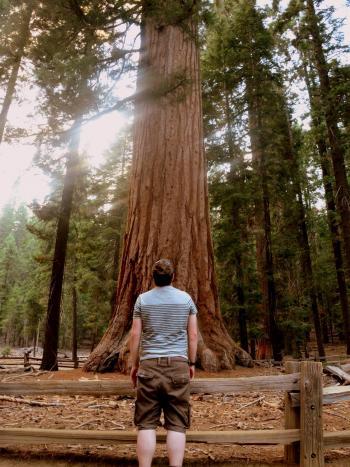 From Glacier Point, our next stop was due to be Mariposa Grove, home to the huge Sequoia trees. Time was already marching on and we started to get concerned whether we would make it in daylight. Again, it turned out to be a really long drive (the park is massive); it took about an hour and a half and it was gone 7:30 PM when we arrived. The light had already started to fade so much that Dani had already taken a picture of the sunset just before we arrived. The trees were incredible, and absolutely massive. Disappointingly, they were fenced off to protect the roots, so you couldn’t get too close. We had a bit of a wander, and it was dark before we left to head back to Mariposa.