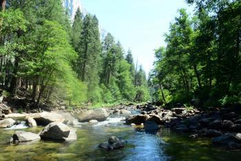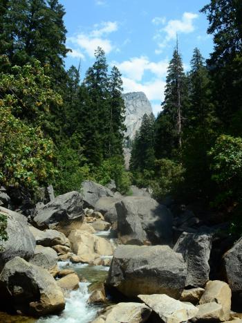We were given a map at the entrance and another at the car park information, and, after catching a bus from the car park to the visitor centre, we got a third. It wasn’t very clear where to start even with all the maps and having asked for information at the car park. Dani asked about the Yosemite waterfalls, but due to the dry weather both the main falls were apparently pretty dry. When we asked again at the visitor centre, the man was a little more helpful, directing us towards the Vernal Falls which involved hikes of different lengths depending on how far you wanted to go up.