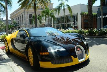 The plan was to drive up Rodeo Drive, home to all the expensive shops. Once there, we decided we would park up and have a walk around for a bit. We tried an underground car park; there were no spaces, but then we happened upon a multi-storey car park that was free for the first two hours - bonus! It was opposite the Warner Brothers media gallery. It was on the road running parallel to Rodeo Drive. We spent about an hour and a half wandering up and down. The weather was lovely and warm and there were lots of expensive looking cars buzzing around with open tops, blacked out windows, etc. We saw a Bugatti Veyron (a very expensive car) parked outside a shop on Rodeo Drive. It was getting a lot of attention and lots of people were taking photos, including me. On the way back to the car, we stopped at ‘The Ice Cream Lab’. The ice creams were five dollars for small tubs, but they made the ice cream fresh, on the spot, using dry ice, I think, to freeze it. I had Mulholland Mint, with chocolate chips, and Dani had Blue Velvet, which had little tiny cupcakes with cream frosting mushed into it. We sat outside to eat and watched the world go by. After, we headed back to the car to drive to our final destination for the day - Santa Monica.