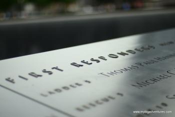 Once off the ferry, we made our way into the Financial District to have a look round. We saw the big bull – like the one in the bullring, in Birmingham – near Wall Street. Then we walked up to the site of the World Trade Center. It’s currently a big building site, as the World Trade Center is being rebuilt around a memorial park. We queued briefly for free passes and then went into the park. It was beautifully laid out - a really peaceful contrast to the buildings and bustle around us. They’ve created two huge square fountains at the site of each of the two former towers and they are designed so the water falls into seemingly endless holes, with the names of the victims inscribed all around the edge, so it all seems quite endless – an endless tribute.