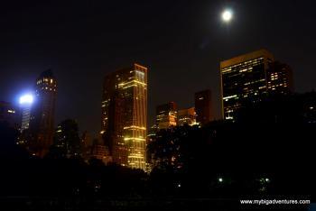 To walk it off a bit, we walked in the park for a while. It was very quiet – almost eerie in parts – and Ben took quite a few pictures of the skyline from amongst the trees, capturing the shadows and the lights. From there, we went catch the subway home.