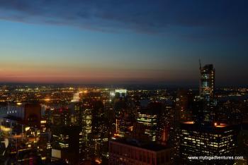 After Macy’s, we headed along 5th Avenue to look at some of the shops. Along the way, we turned off to go and look in Grand Central Station and stayed there for a while to take some photos. Them we continued up 5th Avenue, dropping into Saks to look at some very expensive clothes ($900 for a small blue cardigan). We also stopped in Abercrombie and Fitch and the large underground Apple store. We finally reached Bloomingdale’s, having realised it was on Lexington Avenue, not 5th. Again, Bloomingdale’s was very expensive and very difficult to navigate. Once we managed to make our way out again, as it was already late afternoon, we decided to head back to the Rockefeller Centre in time for sunset. We caught the subway there as it was much faster and saved our legs – it was only $2.75 each.