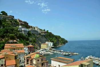 Eventually moving on we decided to grab some lunch stopping at Hotel Flora. It was very tranquil despite being just off a well trodden passage. There were only a few other people there that seemed to be residents if the hotel. We had a very nice lunch sitting on the terrace overlooking the sea. Do look out for it if you visit! After a long lunch we continued to wander in and out of the shops and meander around the streets until about 3.30 when beginning to feel tired we headed back down on the fenicular train and across the dock to get the boat back to Sorrento. The boat back was much quieter again at the top this time at the back right to get the best views on the way back. Arriving back in Sorrento we headed back to the room to cool down.