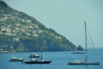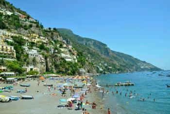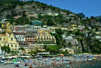 It took about an hour of winding mountain passes so an hour was about enough! But as promised, the seats had offered the best views - of panoramic seascapes and the small coastal townships. Arriving at the top of Positano, we took a few photos of the view, then heading down through the maze of passages and stairways that were heading for the beach. As we went, we passed by many little shops, particularly selling ceramics, and we bought some little pottery chillies for our kitchen.