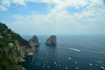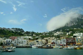 After breakfast we headed straight down to the dock to catch a boat to Capri. Managed to get the 10.45 for 68 Euros return for the two of us. The boat ride offered some nice views back over Sorrento as we stood at the back of the boat. When we arrived at Capri about 20 minutes later, the boat reversed into the dock therefore also giving us a great view of Capri.