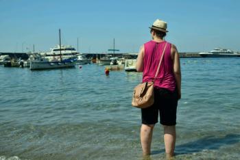 We decided to spend the day in Sorrento today, planning day trips for Capriand Positano for the other days that we're here. So we started with a meander into town, making our way through some of the bustling side streets, taking care not to get mown down by the plethora of mopeds zipping about. Just like in Rome, every crossing is like taking your life into your hands, as you close your eyes, cross your fingers and step out (OK, maybe not eyes closed). At the other end of the shopping area, we headed down a narrow lane leading to, what we thought was, the coastline. And it was! We were looking down onto Marina Grande, and could see across the Bay of Naples to Mount Vesuvius. From there we wandered along, stopping at viewpoints on the way. We arrived at Marina Piccola and could see down to the man made bays in the marina. The water was crystal clear and there were lots of beach huts lining the different sections. Ben had a cheeky icecream while we cooled off under a tree. There is a lift down but we decided to walk down, saving the lift for the more arduous journey back up. From there, we headed to the Porto, to find out about tickets for our planned day trips. Got the necessary info and I had a sandwich.