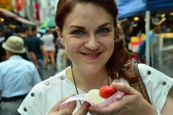 On Sunday we went to Asakusa to see the shrine and multi story pagoda that we had seen pictures of. Unfortunately the pagoda was closed for renovation and was completely covered. There was still however a great deal to look at as on the way to the shrine you walk through a corridor of small market stalls selling a variety of toys, clothes and souvenirs.