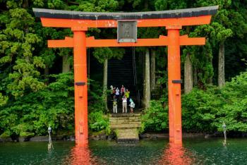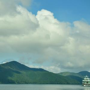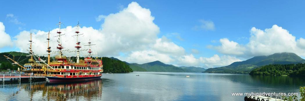 Well we've had a busy few days in Hakone so far. We're staying at the Hakone hotel which is in a great location right on the edge of lake Ashi looking out towards the mountains. On a clear day the hotel has a prime view of Mt Fuji but so far it's been too cloudy. The tops of the mountains have been covered in fog meaning no Fuji, nevertheless there's been plenty to do and we've been having a great time. We bought the Hakone free pass whilst in Tokyo which gives is unlimited free use of boats busses and cable cars in addition to free entry to a number of museums and gardens. Because we're on the edge of the lake, we're only a very short walk from where you can catch the sightseeing ships which take you across the lake to Togendai port. The ships that you catch are modelled on famous 16th century ships like HMS Victory and the Vasa and you're treated to fantastic views of the surrounding mountains on your journey across.