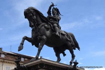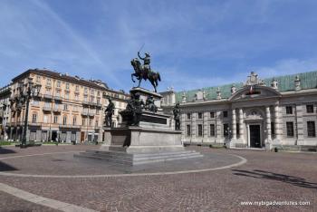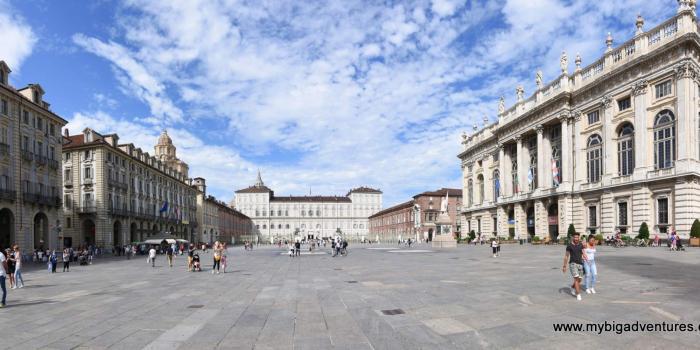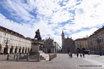 We woke up on Friday to sunshine again and decided to return to the Palazzo Reale to actually visit - it contains about 5 different museums so we thought it needed a good stretch of time! We started in the gardens - a little disappointing, as they haven't been tended well and the only part available to walk around was a patch of grass that was being cut for the first time in what we assumed to be quite a while. The state apartments were splendid however and there was a large armoury, with exhibits of suits of armour for people, children and horses. We had a drink and a cake/biscuit in the palace cafe at the bottom before moseying out. Just outside the palace there is the Church of San Lorenzo, which we noticed was open and decided to pop in, without realising that it was the former home of the Turin shroud and had a small exhibit about it after it was transferred to Turin, with a fill-sized copy on the wall. There was information labellling the key parts of the shroud to make it easier to understand and some information about the various testing that it has undergone to prove authenticity. We also visited the two churches on Piazza San Carlo, which is really close by; the two churches, Chisea San Carlo Borromeo and Chisea di Santa Christina are at the end of the piazza with the pedestrianised part of Via Roma running between them. The churches are quite similar in appearance although Chidea di Santa Christina is more heavily decorated on the outside while Chisea San Carlo feels quite a bit bigger on the inside. It's only a small distance to the hotel so we went back for a short spell before dinner.
