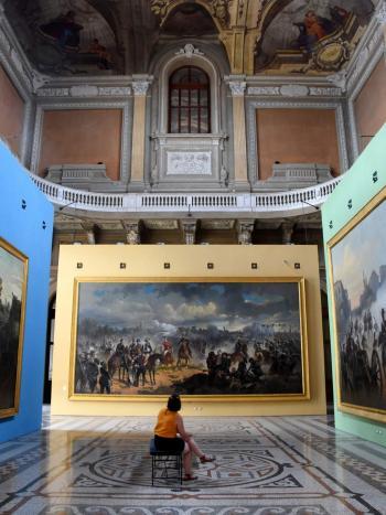 Today, we had planned to visit the Palazzo Carignano, having sat outside it yesterday and having walked past it a few times. Turned out to be a bit more of a mission than we anticipated! We ran into several language barriers with two older gentlemen seemingly refusing to sell us tickets for entry and directing us to a different place. We knew there were state rooms to view so we followed the gestured directions and ended up in the Museo Nazionale del Risorgimento - a military museum about the unification of Italy set within the rear part of the palace. Very interesting with lots of things to see, with painted ceilings revealing the original use of the rooms. There is also a surviving example of the hall of deputies from when the palazzo was the House of the Deputies. There was also a huge room, later discovered to be the ballroom, at least four times the height of a normal room. But no actual state rooms. Persevering, we went back to the first ticket place, having seen others with tickets just in front of us. Took a different approach and were slightly more assertive, and came away with two tickets. It turns out you have to be part of an hourly tour which we had just missed earlier in the day. The tour itself was very interesting and informative - if you were Italian. Otherwise we spent a significant time on the stone staircase and the entry hall, whilst looking up the history of the building on Wikipedia. We then went into the actual state rooms and it was lightning tour of all three, compared to the time spent on the stairs! They were a shining example of Baroque splendour in the fleeting glance we had. Photos were taken for further study.