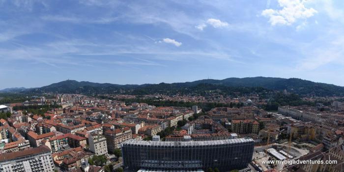 The hotel also seemed to be hosting the Torino football team, as there was their coach parked up outside and people starting to gather. As we headed out for dinner later in the evening, we found that large numbers of people were now surrounding the exit and we had to almost fight our way through the barricades to get out! From there we went for pizza - a place called Pizza ad Hoc, where we enjoyed lovely pizza and beer once again. To burn off some of the consumed calories - and to catch a rather glorious looking sunset - we headed out across the river to the nearby Santa Maria del Monte di Cappucini to see the view back across Turin. It's a fantastic view point across the city which came alive with lights as the sun set. The large tower that can be seen standing high amongst the other buildings is the Mole Antonelliana. It has a glass elevator that you can ride up to see the view across Turin, although we haven't done it yet. We stayed up there for quite a while, watching the lights flickering on through the city, with the sihouettes of the mountains in the distance. And, so to bed.