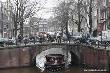 We broke up early this year finishing on the 15th so had already decided we would go away for a few days before the usual Christmas festivities. We had been wanting to go back to Amsterdam for a while and so settled pretty quickly on the destination. We're stopping in a nice hotel with a canal view. It's apparently the oldest hotel in Amsterdam and is where Rembrandt painted 'The Night Watch'. Our room is up on the fifth floor with a balcony out to look over the canal and bridge below. On the first night here we thought the bridge outside looked familiar. It turns out it's in our Big Europe Adventure - Amsterdam album from 10 years ago - we must have stood right outside our hotel to take the picture!