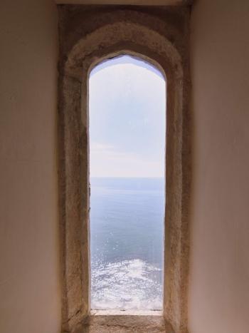 The climb up follows a winding path of uneven cobbles and stepped rock sections, and was no easy feat. It took a little while, but we all got there in the end. There are some terrific views from the top of the boats ferrying people below and the surrounding coast. We had a bit of a sit in the sunshine on the rocks just outside the castle entrance and Dani managed to spot a seal in the sea below! After a bit of a rest, we headed into the castle to wander around the historic rooms, it was all very insteresting, and although there was a steady stream of people, it wasn't exactly busy.