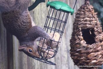 The feeders are proving as popular as ever in the garden this autumn. We've had lots of little birds getting through the seed, but also larger magpies trying to hover around the fat balls, and squirrels doing their usual olmpics!