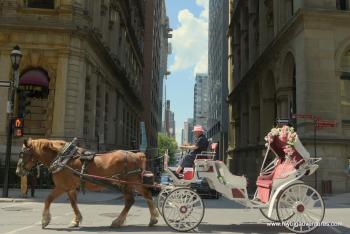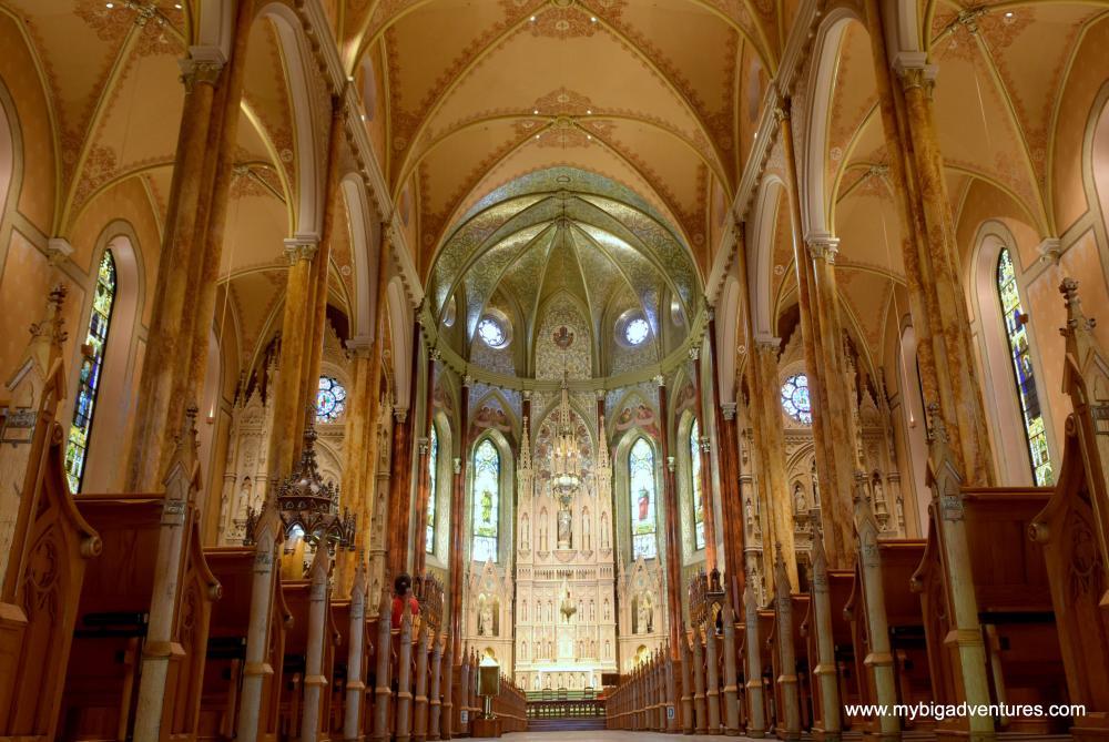 Leaving the basillica we headed across the square to the bank which is Canada's first bank. They have a little museum inside, but it is still a working bank - it certainly looks a little bit Hogwarts inside - I was going to take a photo but the security man told me not to. We wandered back towards the hotel through the old town stopping for some lunch in Starbucks. Afterwards we looked in another building that also turned out to be an old bank, but this time had been converted into offices and a cafe in the old banking hall. We decided we would go to St Patrick's Basillica which is close to the hotel. Again it was very impressive inside, but much quieter than the Notre Dame Basillica. We took some more photos before heading back to the hotel. We took the lift to the top to have a look at the view from the terrace. It was pretty decent, but the skyline is not quite so iconic as some other cities we've visited.