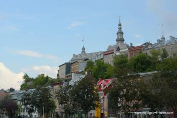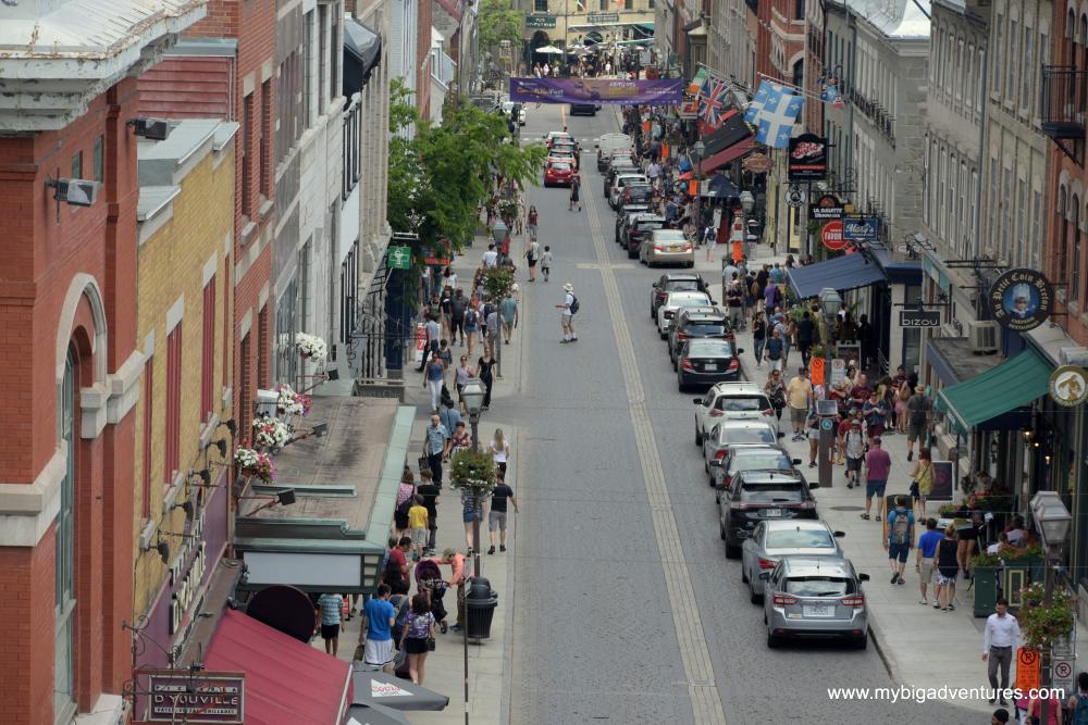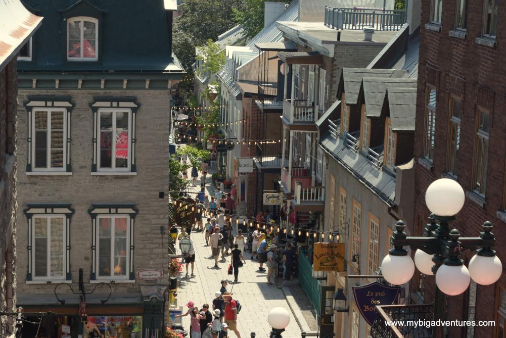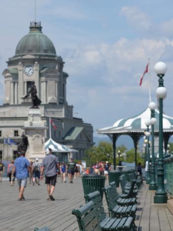 We decided to spend the day exploring a bit more of Quebec today. We were up quite a bit later so grabbed some lunch at Subway which is just around the corner, and then headed into the old town. We started up hill, and found some steps that take you up a bit quicker and after a few more steps we found ourselves on the Terrasse Dufferin which is a wooden boardwalk that wraps around the Château Frontenac which is a grand 19th century hotel. We spent quite a bit of time walking along the boardwalk, stopping on benches intermittently and taking photos of the hotel and view across the Lawrence river. The boardwalk continues quite a way beyond the city walls, eventually becoming steps that lead up to the citadelle at the very top of the hill.