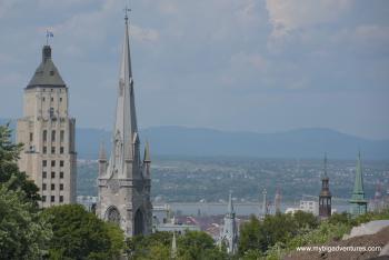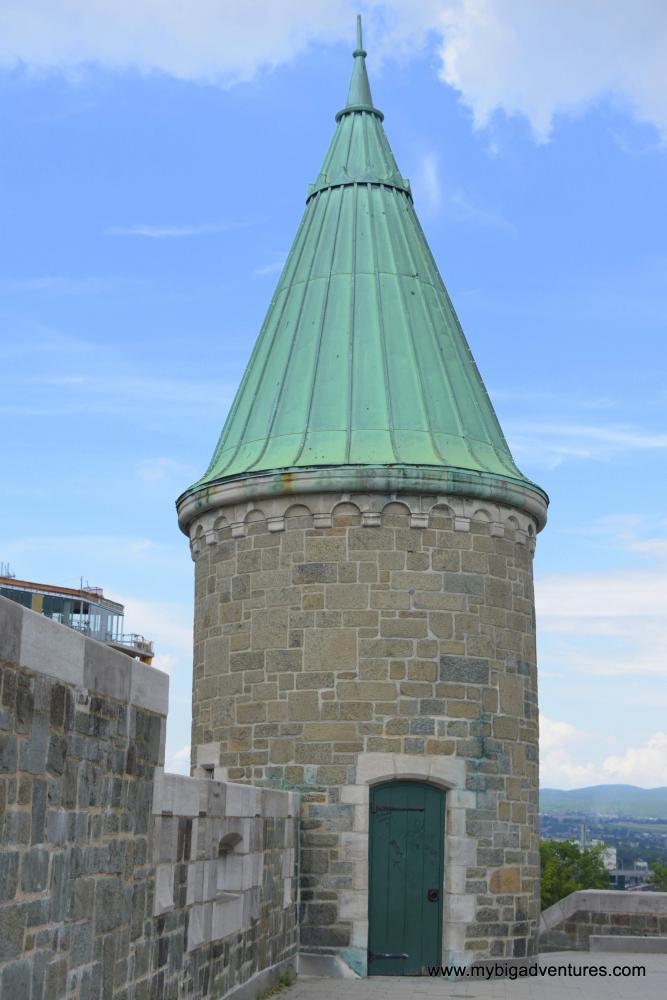 We walked all the way to the top taking in the views back across the city and the surrounding areas. We had an ice-cream, that quickly melted (halfway down my arm) so I ate it in record time before it made too much of a mess. We continued on, reaching the citadelle, which is still an active military base and home to the 22nd Regitment and official residence of the Givenor General and should she wish to use it, the Queen. You can get tickets to tour inside the residency or around the military base, with either giving you access to the museum. We opted for the tour of the base, and were taking around by Anthony who as it turned out was a teacher on his school holidays. He was really knowlegable and gave us a brief history of the regiment and took us around many of the key buildings - stopping in the shade where posible as it was really hot. One of the stops on the tour was the Kings Bastion which offers some of the best views across Quebec and a great place for photos.