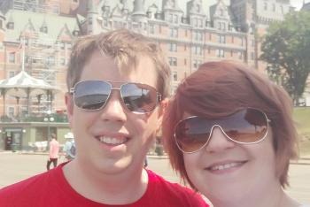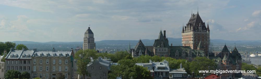 It was another early start this morning for our train to Quebec. We set alarms and were packed up and checking out just after 8 ready for 9.06 train. The train station was only a short walk from the hotel so we arrived in good time, aiming to get some breakfast at Starbucks. Alas, when we arrived Starbucks was closed, so we carried on into the station to see what else was inside. There was a McDonalds but the queue was massive so we decided we would get something on the train again and before long we were queued up and climbing aboard. The journey went pretty quickly, it wasn't so far this time taking just over 3 hours and we arrived in Quebec City just after midday.