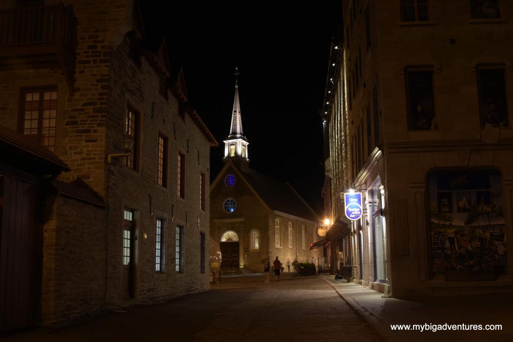 After the tour, we had a walk through the museum which had some really intesting exhibits including a medals room with several examples of the Victoria Cross awarded to members of the 22nd Regiment. Finally leaving the citadelle, we headed back down the hill into the old town, stopping back at the hotel before heading out for tea. We decided to try the hotel restaurant (restaurant Louise) for tea. I had fish and chips, whilst Dani had sausage and black pudding, again very nice. We finished the evening back up on the Terrasse Dufferin, taking a few night photos before calling it a night.