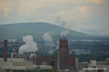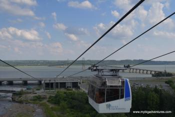 We then followed the path around the pool at the bottom of the falls and across the bridge to a welcome centre, where we sat and had a drink in the cool. We had also spotted that you could catch a cable car from here back to the top, and not relishing the thought of all the steps we bought tickets. The cable car took us back to the top on the other side of the bridge from where we had first started, just outside Manoir Montmorency, an old building that houses receptions rooms and a restaurant. We didn't go in, but we did have an ice-cream from the stall on the boardwalk terrace just around the corner - it was very nice. Just as we were about to cross back over the bridge to head back out, we realised that the bus stop where we had been dropped off, was just up the pathway (we'd walked a long way round as it turned out when we'd arrived). As we headed up the path, we managed to catch our return bus that was just getting ready to leave.