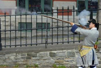For our last day in Quebec, we had decided to explore the old town a bit more. Although we had already been to the citadelle, we hadn't had much time to look around the rest of town so we once we were up and ready we started heading up hill. We went to Tim Horton's first for some breakfast, geting an egg and bacon muffin with a hash brown - nice. We then made our way to St John gate which we climbed up to take in the view. Whilst up there, we saw some people in period costume below saying something was happening in 10 minutes. They turned out to work for the Artilary museum which is just by the gate, and were there to do a black powder demonstration. We stuck around to watch, taking a few photos of the gun shot whilst there, and then afterwards decided to check out the museum.
