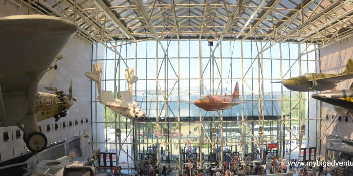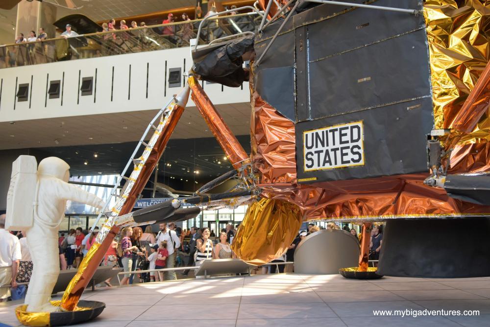 Eventually leaving the archive, we headed across the road to the sculpture garden, sitting around the fountain to eat our sandwiches by way of lunch. Our next stop was the Air and Space museum; we'd really liked this one last time, so thought it was due a revisit. There was a bit of a queue, to get inside, through security but it moved pretty quickly and then we were in. Seemingly the museum is undergoing a large refurbishment meaning approximately half of it was closed to the public which was a shame, but we carried on to see what there was. Although there were some familiar exhibits some of the others seemed to have changed, I think there were a number of different planes hanging from the ceiling this time, but can't remember for sure. We walked through the exhibits on early flight looking at the Wright brothers' original 'Flyer' plane - the first successful powered airplane. We also spent time walking around the space exhibits including lunar modules and space suits including the one worn by Neil Armstrong.