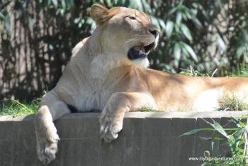 We stopped by the Panda Plaza for some lunch sharing pizza and crisps and then cracked on to see some more of the animals. We went in the Great Ape House to see some of the Apes and then walked on to the big cats. The tigers weren't out unfortunately and the male lion was asleep but the female lions were a bit more alert and moving around so we stood and watched them for a while before moving on. We headed back up the hill through the American trail looking at the sea lion and stopping for an ice-cream. Continuing on, we saw the American Eagle, and the river otters, but that was about it as we werent able to see the bear, the wolf or the beaver. Before heading out, we decided to revisit the bison, Dani had spotted a small yellow bird when we there earlier in the day, but I hadn't managed to get a photo, we didn't really expect to see it again, but suprisingly it was there, I guess they must be nesting nearby. There was a mention on some signs about the zoo within the zoo as birds, insects and other animals that aren't part of the zoo are attracted to the site. We did infact see a range of butterflies, birds and chipmunks on our way around.