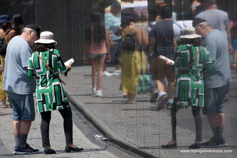 We moved on visiting the Korean war memorial which is represented by a series of statues of soldiers wading through undergrowth. The memorial is really poingnant with each of the statues looking out in a different direction just as the troops would move in a platoon. The statues are surrounded by a polished mural wall with pictures taken from the archives of other forces that suppored the Korean war including Army, Navy Marine corps and Air Force etched into the surface. We continued on past the Lincoln memorial but not stopping this time and instead continuing to the Vietnam Veterans Memorial. This consisted of the names of over 58000 men that gave their lives engraved in the memorial wall. The wall is sunk into the ground rather than have a raised profile, so it's difficult to see until you reach it.
