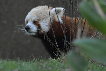 We didn't arrive until the afternoon, so didn't have enough time to cover the whole park so we started to head towards the Rhino enclosure first. On the way we stopped by to see the red pandas. last time we were here in the summer, the red pandas were really difficult to see, high up in the tree, but today they were at the bottom, happily scoffing the vegitatiom, we stayed for a little while taking some photos - I'd only brought the big lens, and the pandas were so close I struggled to fit them all in.
