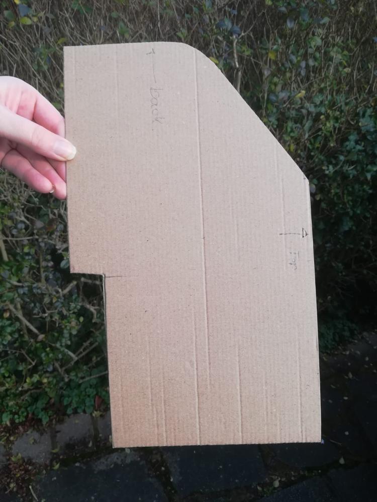 Last weekend we bought the wood needed to make the shells, MDF for the sides and some timber to brace across. We had the MDF cut to size at B&Q, but still needed to cut out for the angle and the skirting board. We made a template out of cardboard to speed things up and keep all the cuts consistent and then got started with the jigsaw. Over the course of the last week we got all of the pieces cut ready to put them together tonight.
