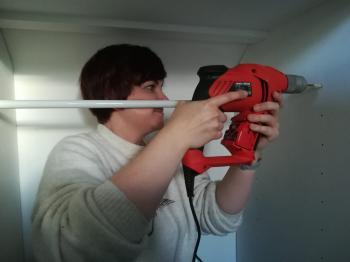 After a spot of bowling, we got back to work on the project. Today seemed a little less productive but involved a lot of trial and error. We started off by cutting the shelf for the top of the units. We were really keen to get a nice finish, but neither wall was exactly straight so in order to get the finish we were looking for, there was a lot of measuring, cutting and remeasuring before it was right.