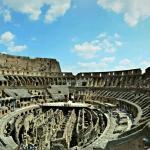 We walked on, stopping in San Pietro in Vincoli, a slightly more understated church with frescoed ceiling and dome. Finally a short walk on from here we arrived at the Colosseum. Prebooking the tickets online turned out to be a great idea as the queues were huge. There were a lot of people around trying to sell tours but we headed for the prebooked tickets line and were in pretty quickly. Having visited before, the Colosseum was no less awe inspiring. We spent time admiring the views both into the centre of the amphitheatre and outside to the surrounding landscape. On the second floor we admired the ancient treasures, many of which are over 2000 years old.