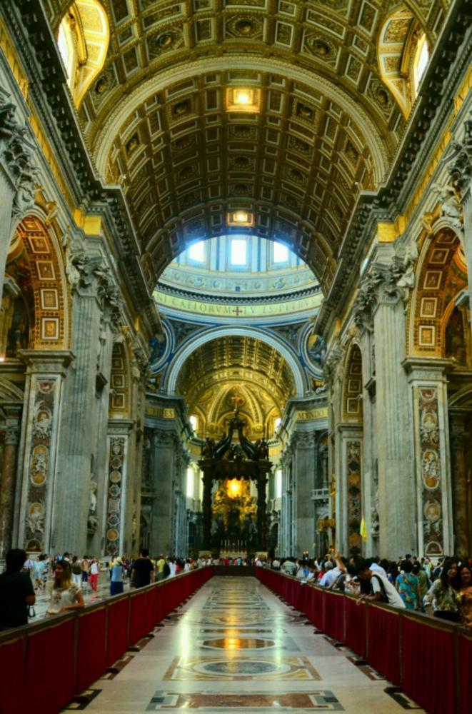 The first thing we decided to do was visit the cupola. We opted for the lift tickets which you can get for 7 Euros as apposed to the 5 euro tickets where you have to climb an extra 200 steps. After the lift you do have to climb a further 300 steps and as you approach the top of the dome the space gets a bit narrow so not ideal if you're a bit claustrophobic. once at the top the 360 degree view is spectacular, with views as far as the eye can see taking in sights such as the piazza below, the pantheon, castle Sant'Angelo and Vatican city itself including the pope's private residence. We stayed up there for about an hour before heading back down to explore the basilica itself.